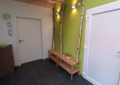 von hier aus geht es links zum Yoga-Raum, rechts zum WC und zum Atelier